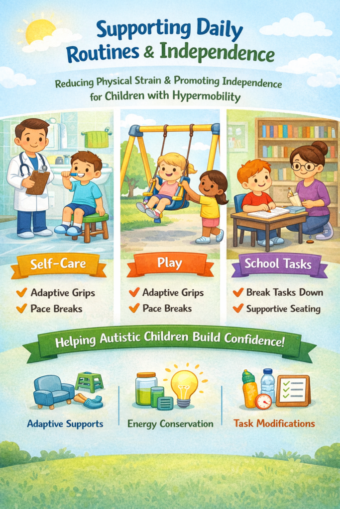 In autistic children with joint hypermobility, reduced proprioceptive input can affect the body’s awareness and capacity for self-regulation. In turn, this can affect their balance, posture, and autistic emotional regulation.